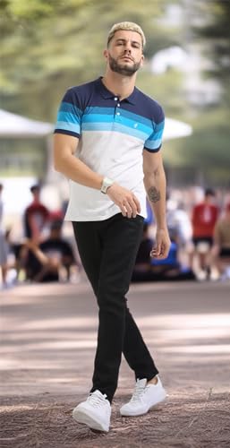 fanideazBrandedMen’sCottonHalfSleeveStripedPoloRegularTshirtMen_Blue23_2XLShopsyday.com