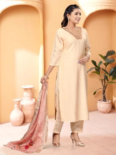 Buy SHIENZY Women's Kurta & Pant with Dupatta | Straight Kurta Outfits | Ethnic Set (1588SZ_BG_L) Brown at Shopsyday.comBuy SHIENZY Women’s Kurta & Pant with Dupatta | Straight Kurta Outfits...