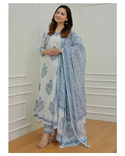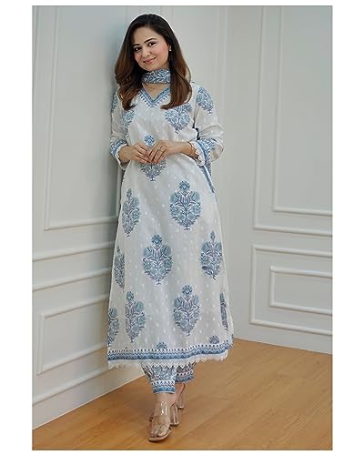 10 reviews for Buy Women’s Cotton Printed Floral Straight Kurta with Palazzo Pants and Pr...