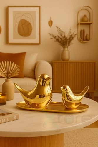 15 reviews for Buy Xtore Ceramic Golden Blessing Birds Figurine for Home Decor | Living Room, B...
