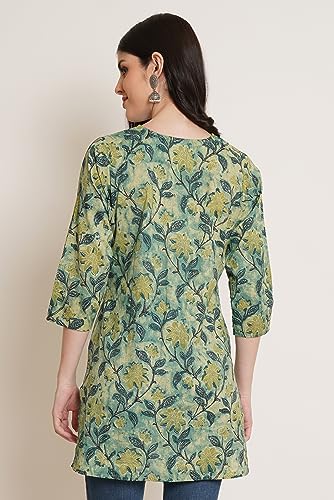 COTLANDFashionsJaipuriCottonPrintedRegularShortKurtiWomen(ShadesGreen),LFashionShopsyday.com
