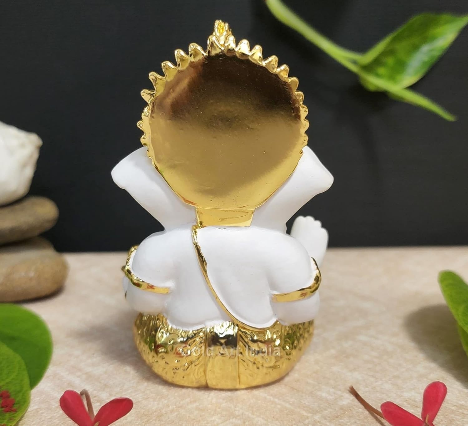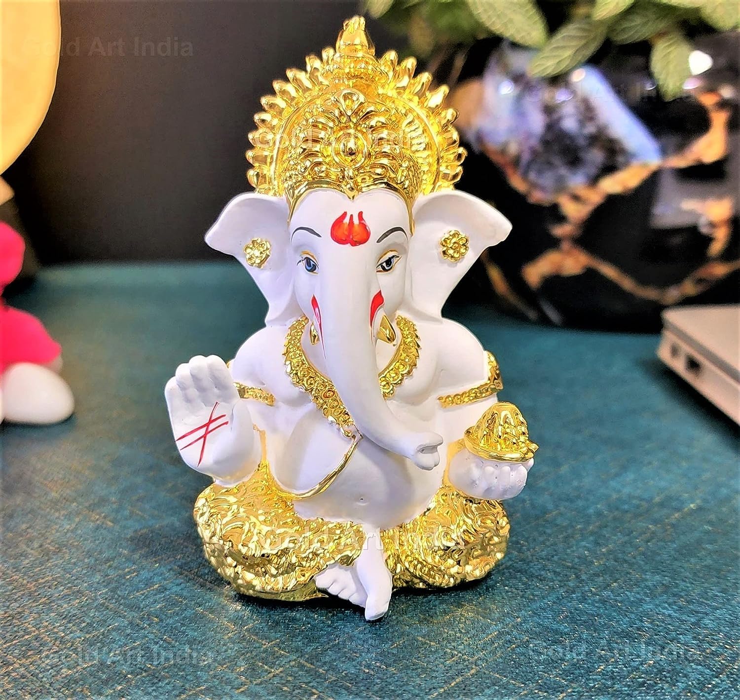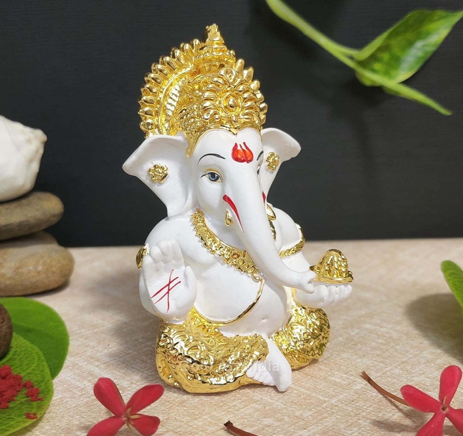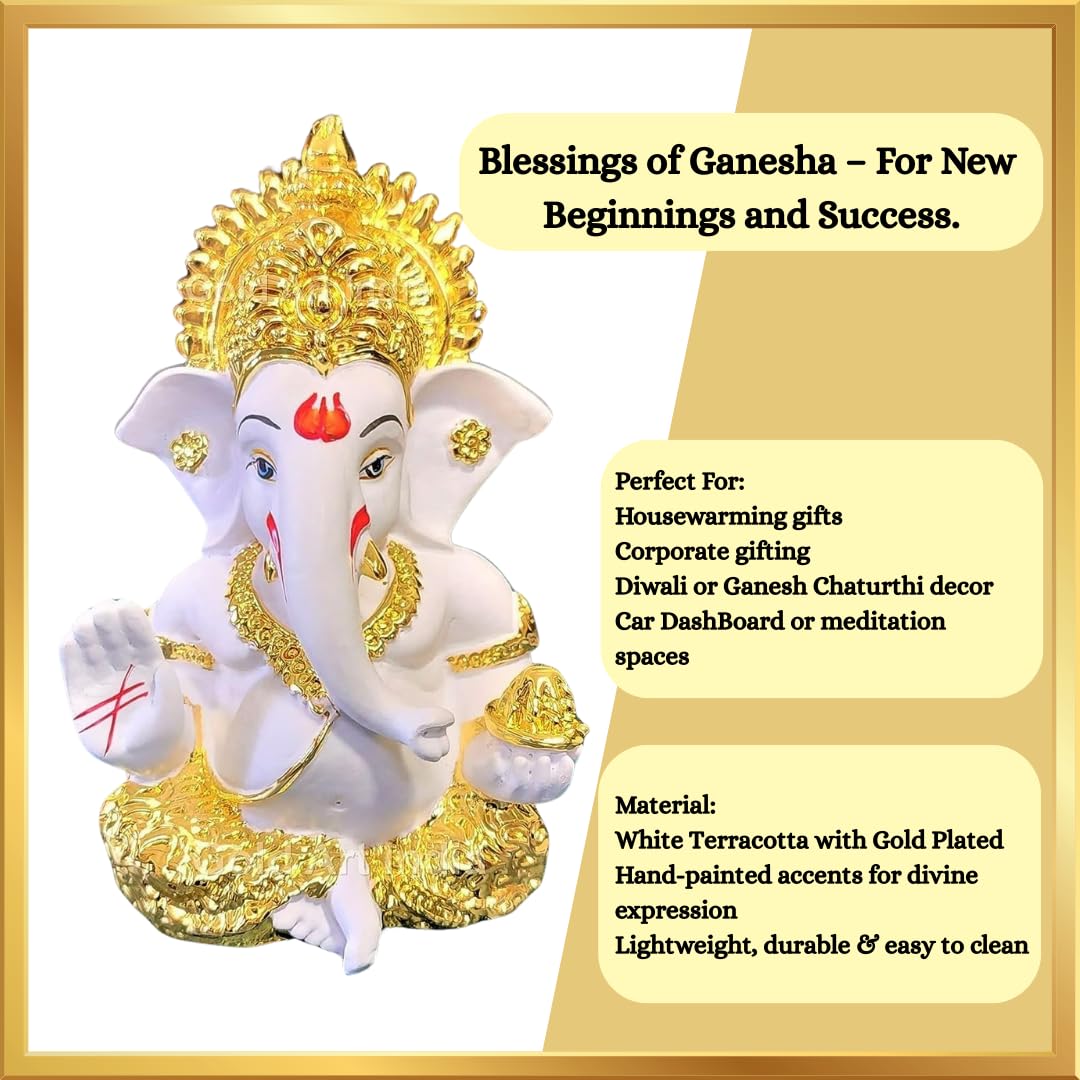 - Size: Height 3.5 Inches x Width 2 Inches | Weight: 140 Grams | Material: Ceramic, Silver Plated with Terracotta hand painted Package Contents: 1. Gold Plated Ganesha Idol