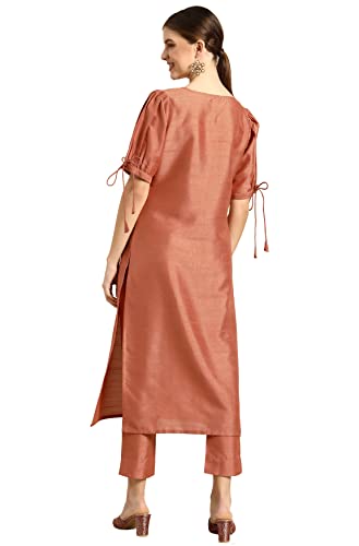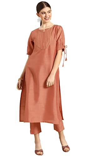 10 reviews for Kurta & Pant Set Women Peach Silk Blend with Embellished Print Outfit for Wo...