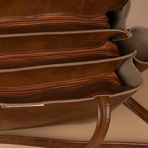 Finally a perfect stylish and functional shoulder bag for carrylux and 3 main compartment with internal pocket croc print fabric with outer material synthetic leather, artificial leather, detachable sling strap with adjustable and front side of bag mention brand logo