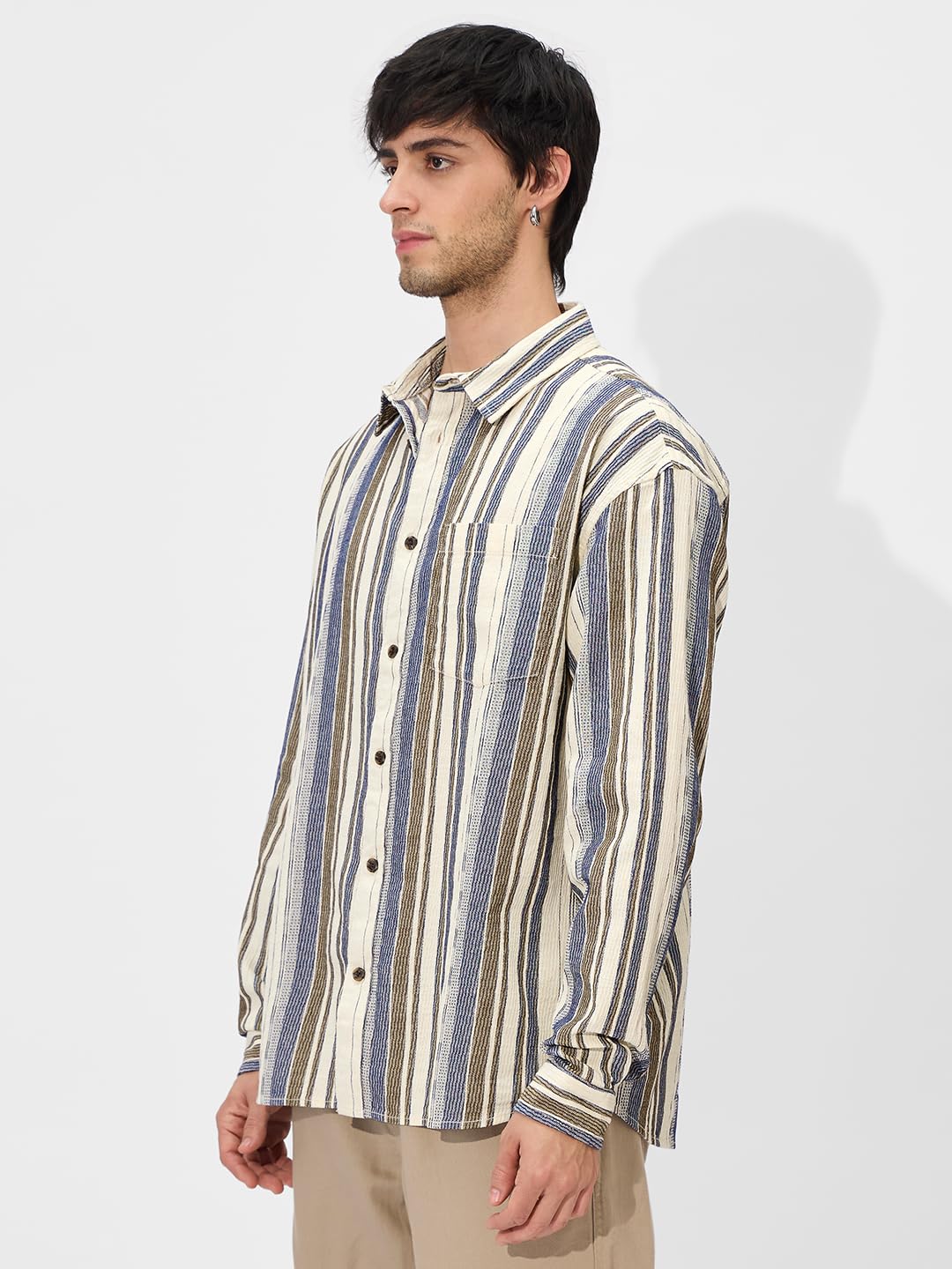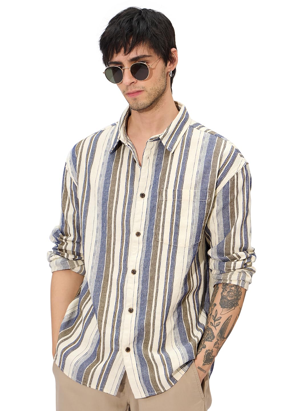 Shop for Stripes: Cream, Blue Men Shirts Online |