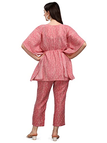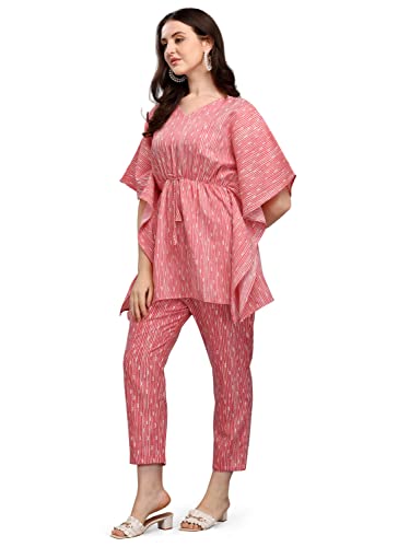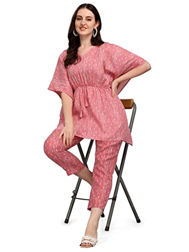 Women's Cotton Blend Straight V-Neck Printed Kaftan Top with Pant (SD228_KB-L_Pink)  Shopsyday.com: Women ClothingWomen’s Cotton Blend Straight V-Neck Printed Kaftan Top with Pant (SD228_K...