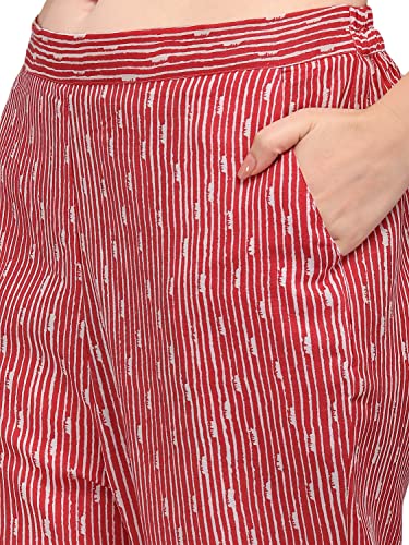 Women’s Cotton Blend Straight V-Neck Printed Kaftan Top with Pant (SD228_K...