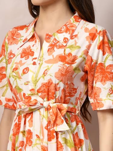 15 reviews for Women’s Floral Printed Cotton Fit and Flare Below The Knee Dress (Drsorang...
