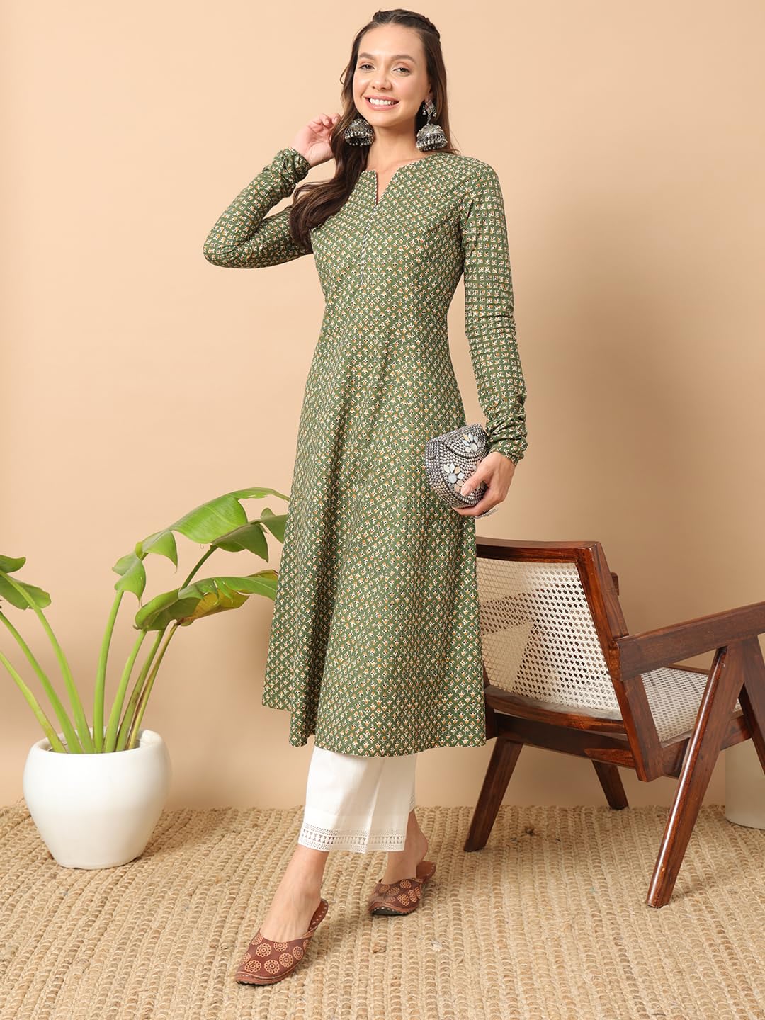 10 reviews for Women’s Floral Printed Green Cotton A-Line Kurta