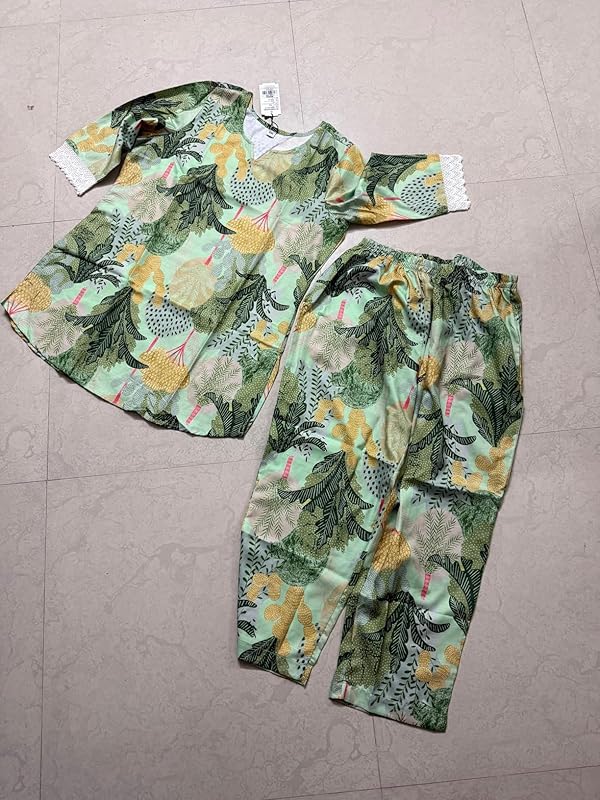 10 reviews for Women’s Green Printed Straight Cotton Blend V-Neck Co-ord Set (SD682_KB-XL...